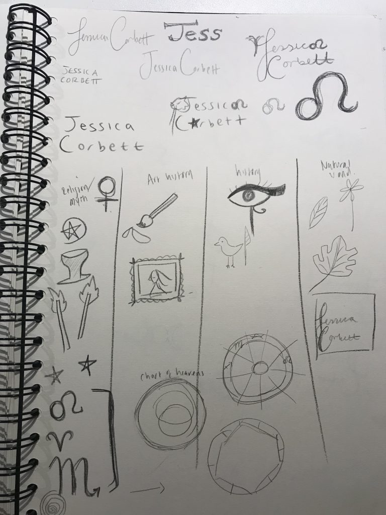 This week we were asked to create a typographical logo using our names and incorporating themes and images that reflect design influences in our life. I chose to focus on astrology and spirituality when creating my logo. I first sketched up some ideas.