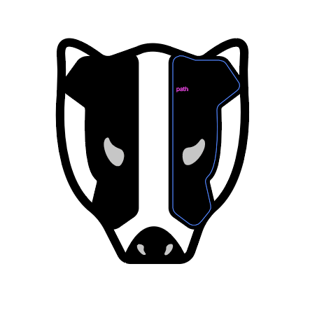 One of the key images of my poster is the badger and I wanted to focus on this first. I used the pen tool with my mouse to draw everything in this post. I knew from the beginning that I was attempting to create a modern looking poster with an up to date illustration style. I looked at references of badgers to make sure that I got the key shapes right. This is how the face turned out: