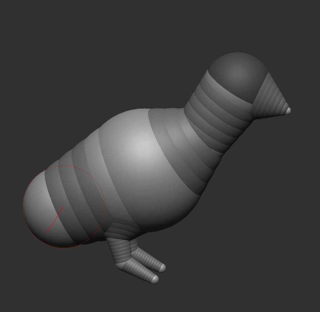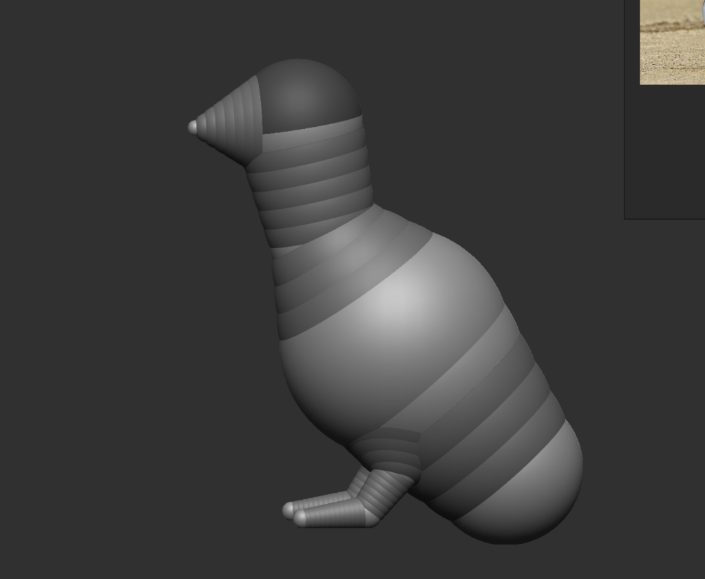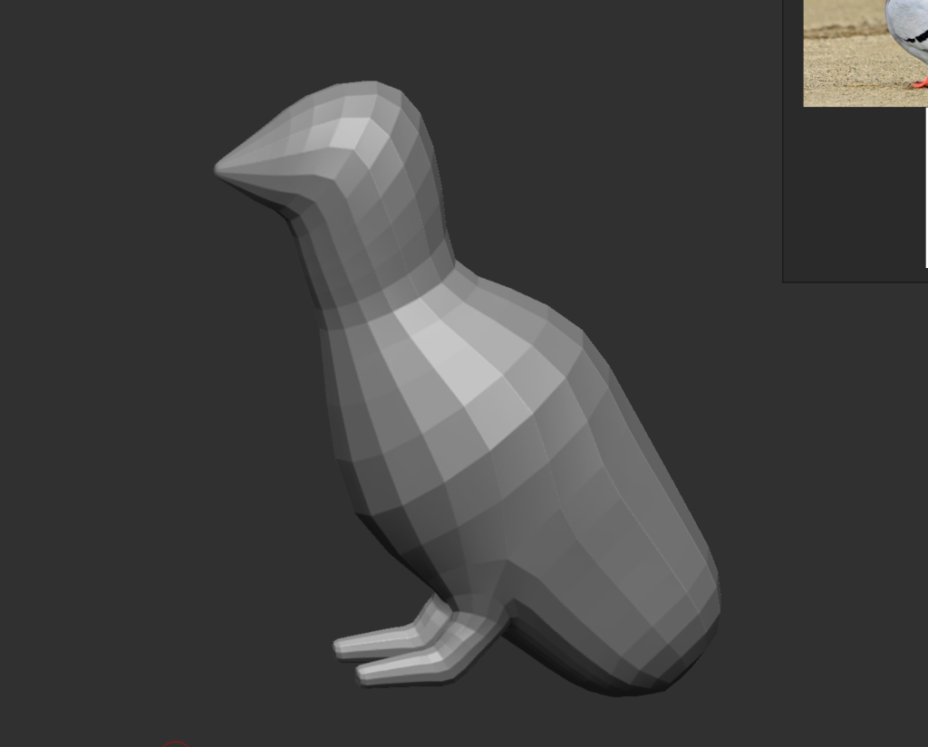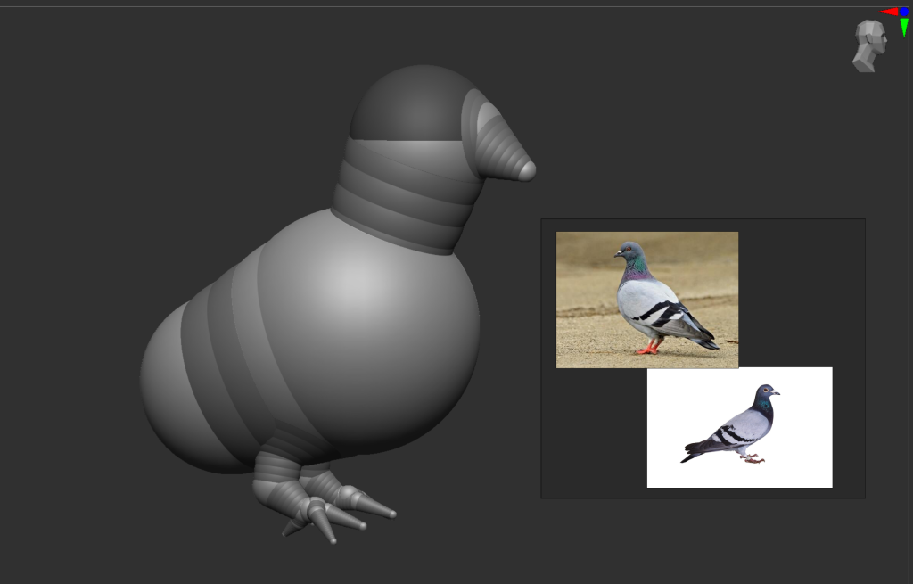 This original pigeon model ended up breaking after being smoothed so I had to start again. I think that there were too many Z-spheres stacked on top of one another so when I modelled my next pigeon I simplified the shape extremely. I was actually able to make this model really quickly compared to my first attempt.