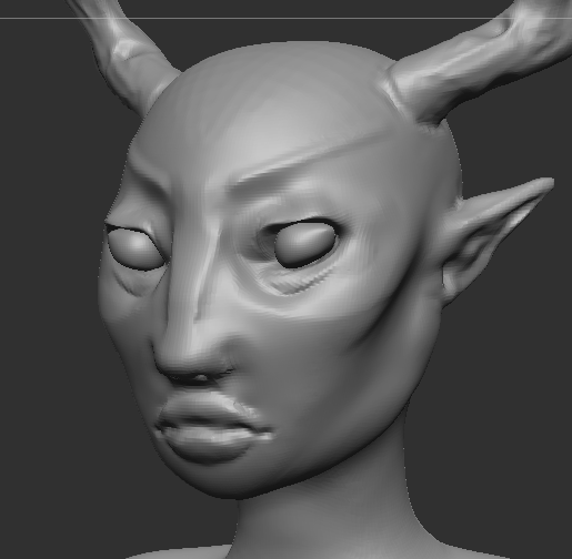 Then a few minor adjustments were made to the body using the move tool and more detail was added into the face. The eyes and eyebrows really made the face for me. I was really impressed with how the face turned out. I used the ‘clay build-up’ brush to create the nose shape and eyes, but went in with the ‘DamStandard’ brush to carve out the fine lines of the mouth, eyebrows and nose.