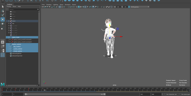 When my character had been fully rigged and weight painted, I started with the animation process. Firstly I made sure to save a separate copy of my fully rigged character ready to go, and created new save files for each animation.