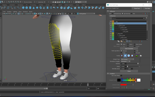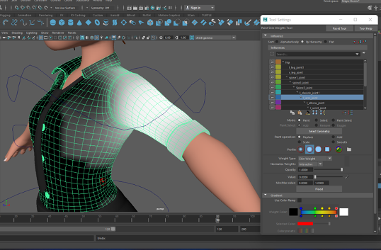 When I had a fully rigged character I was able to move on to ‘Weight Painting’. Weight painting ensures that if I moved one part of the body another part of the body will not move with it and therefore creates more realistic movement. Unfortunately my characters mesh was split into a lot of different sections so the weight painting was quite difficult.