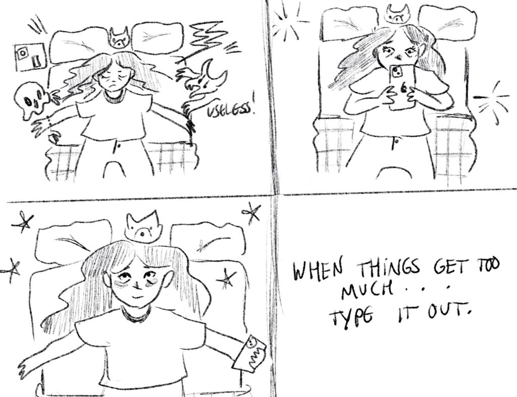 The first issue that I came across was trying to find ways to film myself without it being obvious that I was doing so and still creating the desired affect. For example, in the storyboarded panels below I have decided that at this point in the advert I will try to create a birds eye view effect and mimic the effect of a dolly zoom to show the character having a breakthrough moment whilst using the app. I chose to ‘dolly’ zoom at this point so that the audience can “feel a certain intimacy with (the) character” (Renee, 2017) I wanted to bring the focus to the character and the phone and take the focus away from the illustrated creatures: symbolising the refocusing and grounding properties of the app I am advertising. To do this, I might need to ask someone to help me film it, if I do go down this route I will credit the person filming in credits at the end of the advert.